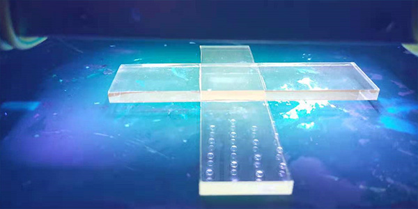 UV膠固化進程可控制性是一大亮點,UV膠在有紫外照耀下會停止液態轉固態的進程,若間斷光源時,固化進程也將間斷,從頭補光又可規復一般固化,對有須要的施膠工藝有極大的贊助。